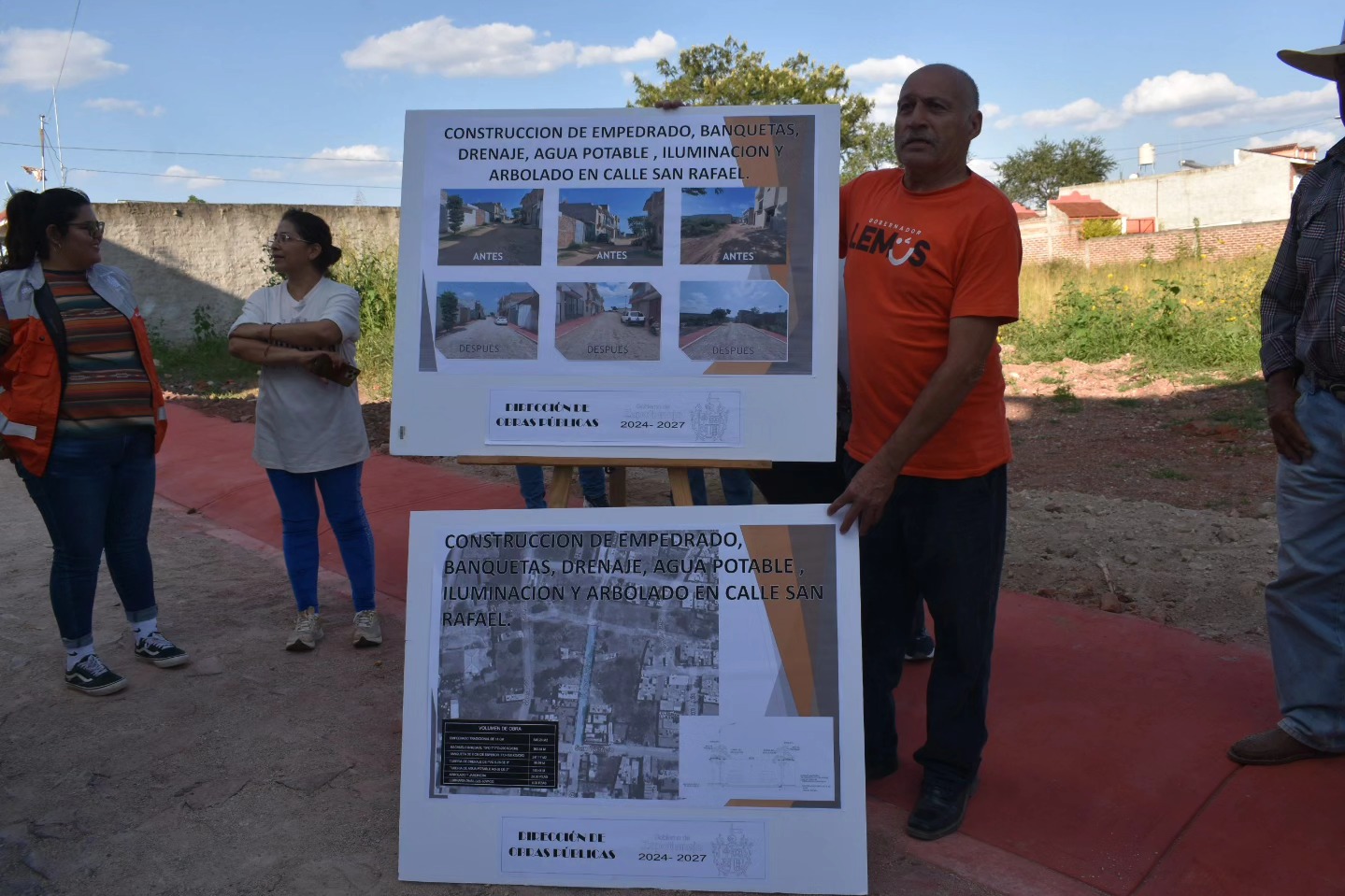 En la colonia San José del Río entregamos la obra de la calle San Rafael, de la calle San Antonio a San Patricio; se realizaron trabajos de empedrado, construcción de banquetas, instalación de más de 320 metros lineales de red hidrosanitaria.